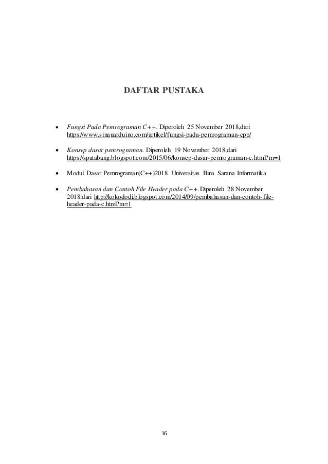 Contoh Program Kelas SaranUntuk penyempurnaan pembuatan makalah kedepannya saya mengharapkan adanya saran dari semua pihak baik dosen maupun seluruh mahasiswa yang membaca makalah PEMROGRAMAN C DAFTAR PUSTAKAFrieyadie. Makalh dan program ini. Contoh Program C Sederhana Menggunakan Fungsi Prosedur damasdev Jika dalam pemrograman pascal kita mengenal prosedur dan fungsi maka dalam bahasa pemrograman C kita akan menyebut keduanya sebagai method.