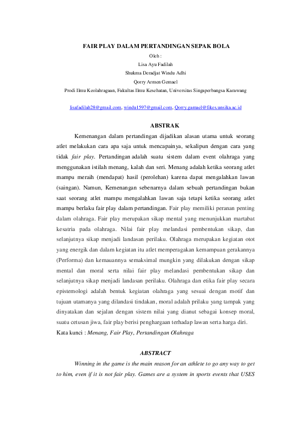Pdf Fair Play Dalam Pertandingan Sepak Bola Windu Adhi Academia Edu